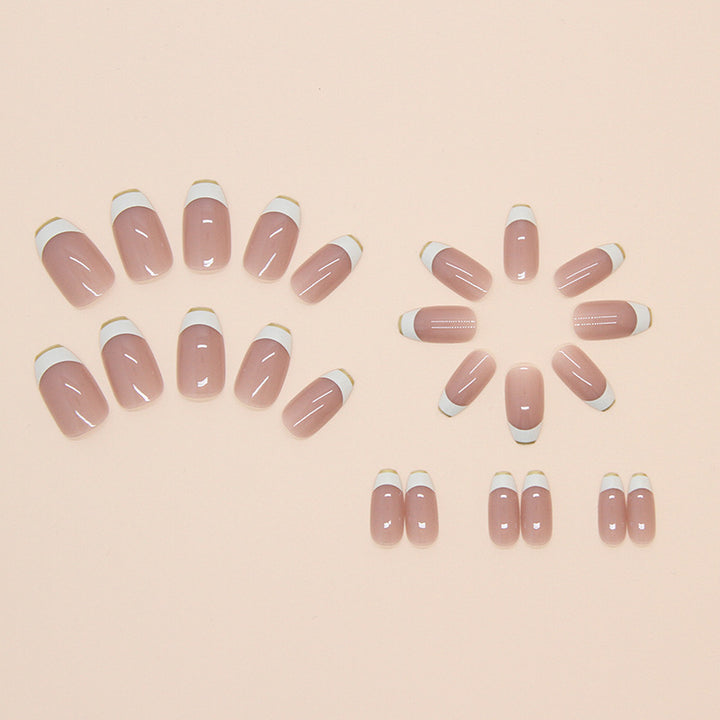 Classic Gloss French-Tip Fake Nails - 24Pcs