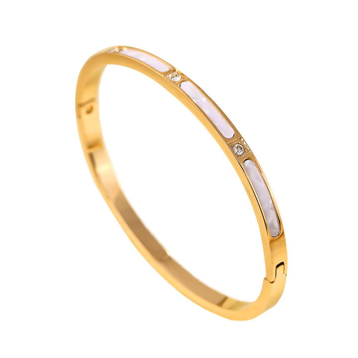 Elegant White Inlay & Crystal Stainless Steel Bracelet | Zi Collection Hub