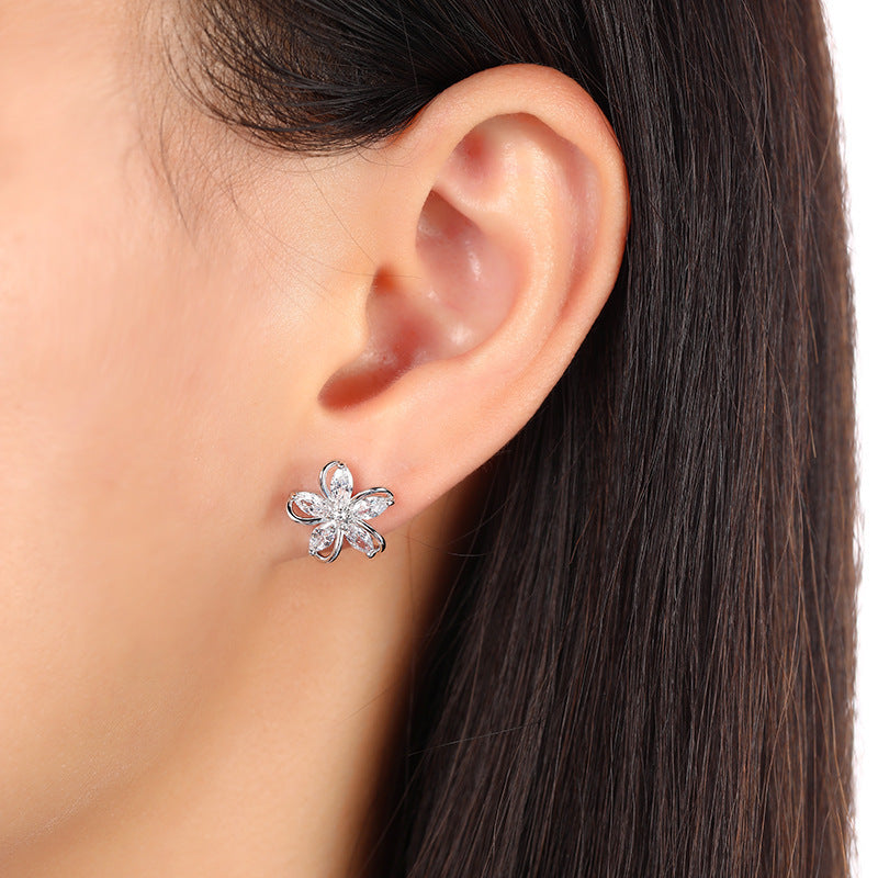 • Five-Petal Flower Shining Earrings