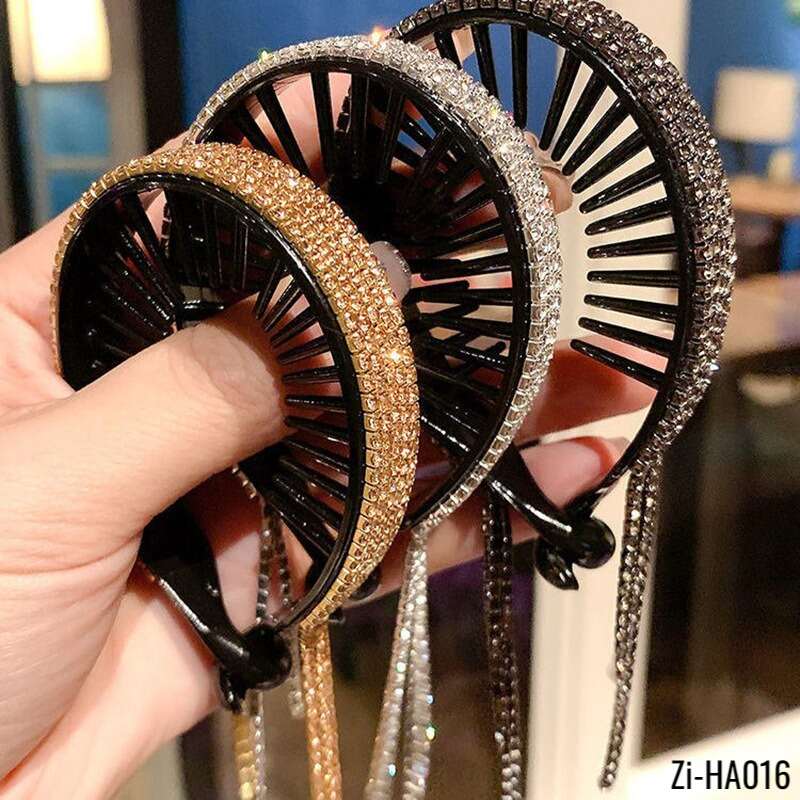 Fringed Rhinestone Ball Head Ponytail Buckle Hair Tie Grasping Clip