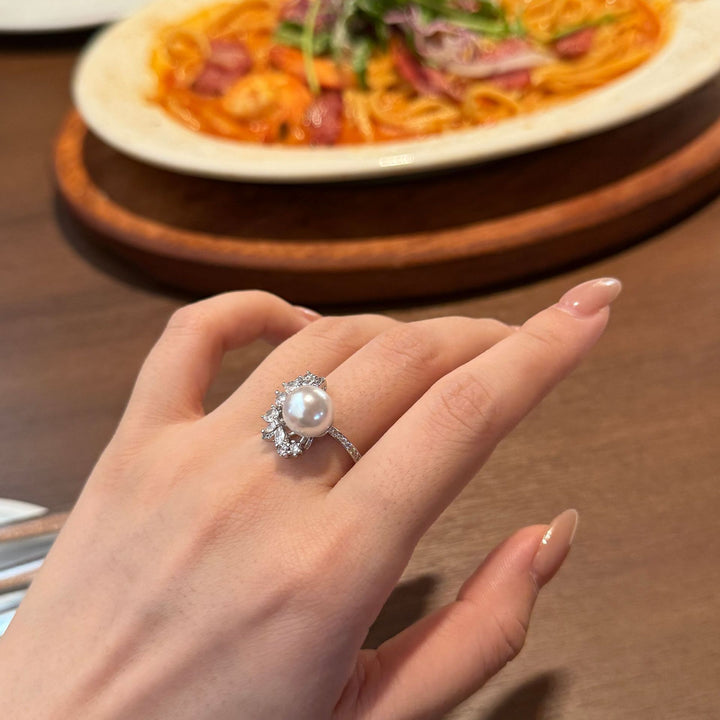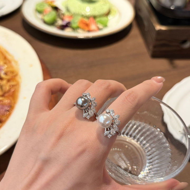 Geometric Hollow Pearl Ring - Adjustable