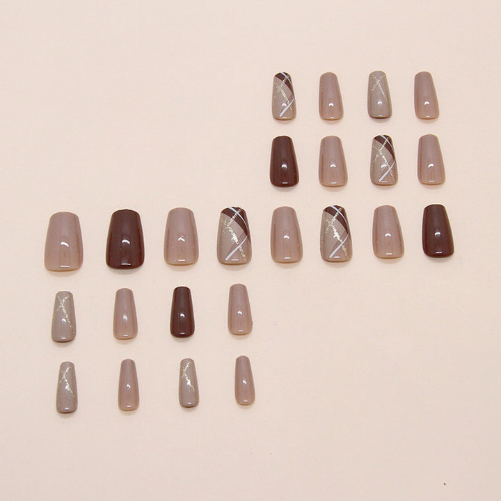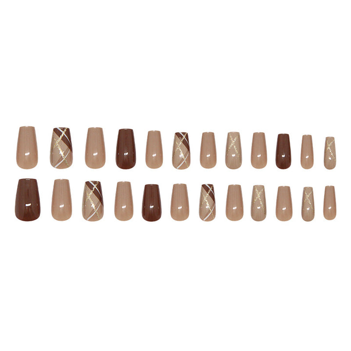 Glitter Quilted Milk Coffee Brown Fake Nails - 24Pcs