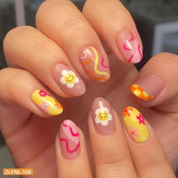 Multi-Color Corrugated Sunflower Smiley Face Fake Nails - 24Pcs