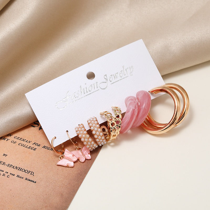 New Pearl Inlaid Butterfly Earrings Set 5 Pairs - Zi Collection Hub New Pearl Inlaid Butterfly Earrings Set 5 Pairs - Zi Collection Hub
