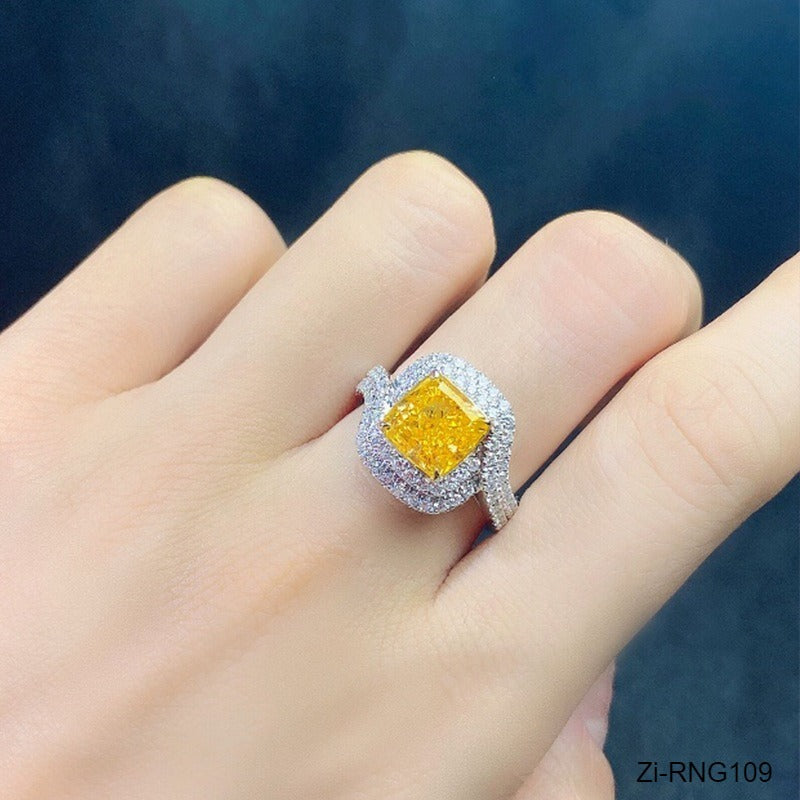 Yellow Cubic Zirconia Wedding Engagement Square Ring Adjustable